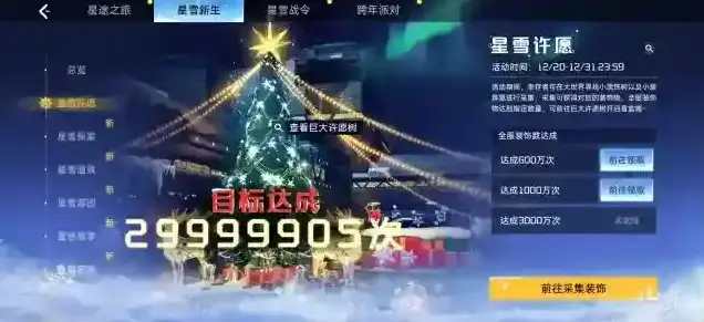 没想到吧,大世界的树和草也穿上了新衣!这么好看当然要采集一下,采集可获得星雪装饰物,全服装饰达到3个阶段,幸存者可以在巨大许愿树下一起拆礼物~