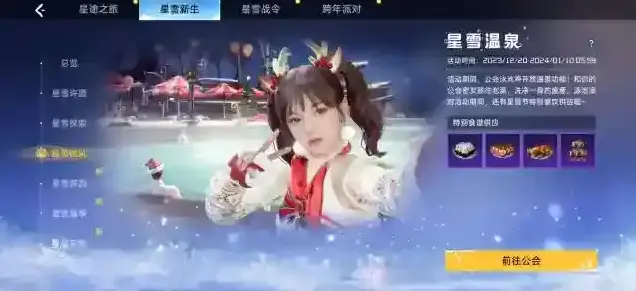 冬天与温泉的适配度是100%!公会泳池将开放热气腾腾的星雪温泉,新增双旦食谱,有什么能比得过泡温泉吃大餐!