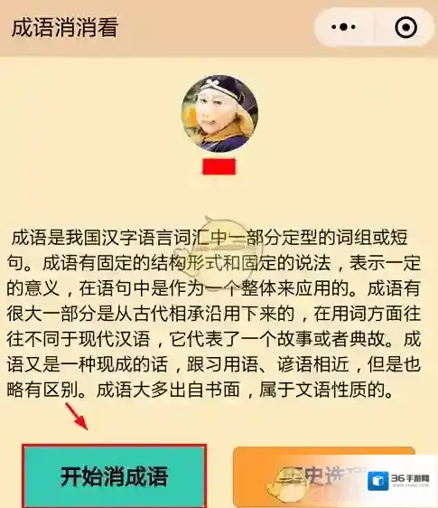 6.进入成语消消看游戏,点击开始消成语,如图所示