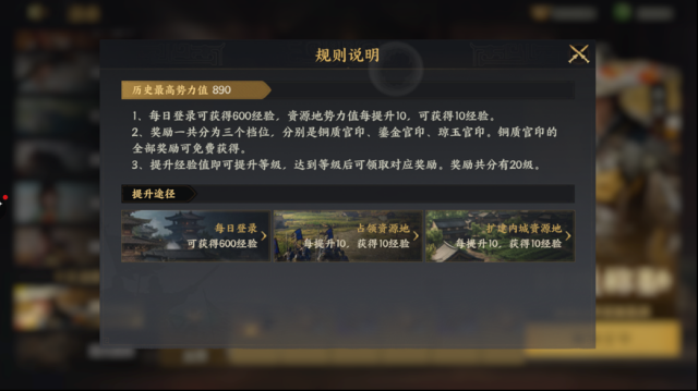 根据个人占领的资源地的势力值进行排名,活动结束后,对应排名的玩家可获得相应奖励。(推进主线任务可提升资源地占领上限)