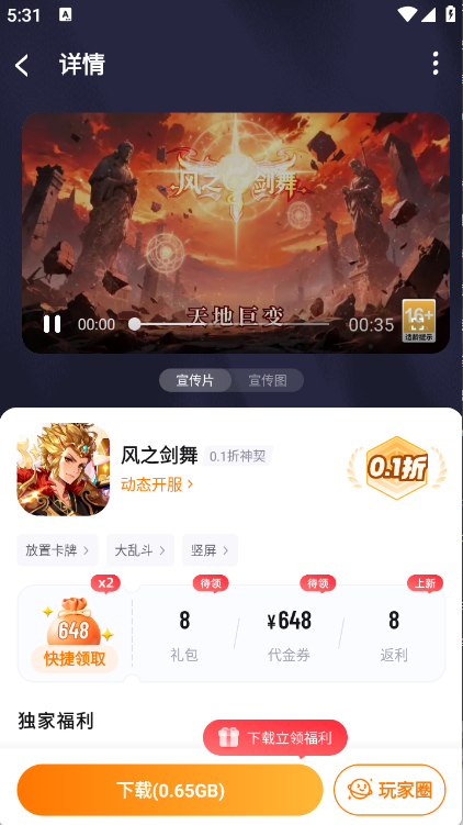 4、用户找到想玩的游戏以后进入详情页,点击立即下载即可。