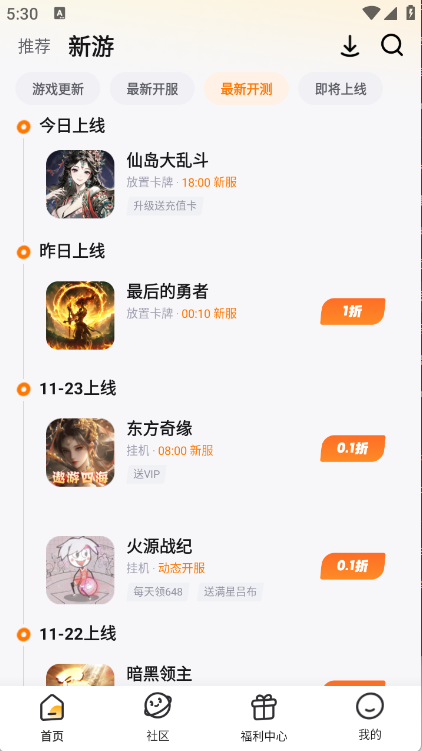 [新游] 整合新上线、新更新游戏、即将上线游戏