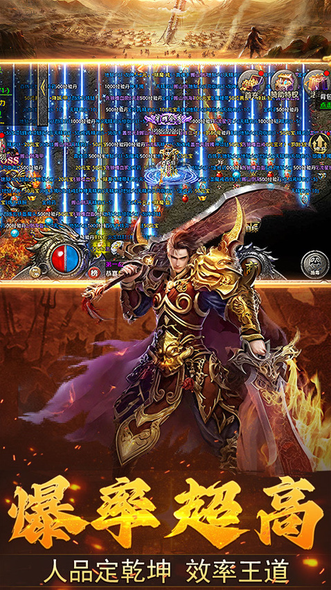 6、本服承诺:游戏内爆率超高,小怪也有机会爆出终极装备。人品决定一切,效率才是王道。玩家打得越快,所获得的优势就越大。
