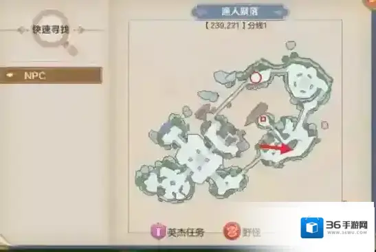 渔人聚落,去龙骨地方找族长(箭头),接任务后去找三生花(圆圈)。还有一个隐藏任务,就是熊猫武士的隐藏任务,只要兑换了熊猫的皮肤激活就可以在方块处领取这个隐藏任务,给的奖励一般。这个任务无所谓,因为皮肤碎片获得不容易,都是优先换冰甲熊,然后换狐狸皮肤的,熊猫皮肤看个人爱好吧,