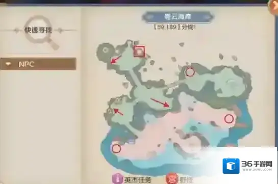 卷云海岸,去瞭望台方块标识那个地方,抽一次风铃,就可以接任务了,箭头标识是三个龙蛋的地方,圆圈标识是三个箱子的地方(完成卷云海岸英杰任务后,给的福利箱子)。