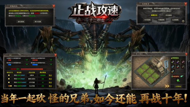 止战传奇十二职业,180复古三职业版本,在战、法、道三大职业的基础上衍生出了丰富的十二流派玩法,职业之间全都相互克制,并且数值平衡,让每一个职业都有可玩的价值!游戏内众多的BOSS随机刷新,散人也有机会抢BOSS,发育空间非常的大!本服内一切皆可打,发育快且非常爽,版本耐玩且有趣!更有跨服战场玩法等你来战,诸服强者交锋的试炼场,也是获取神级资源的机缘地。