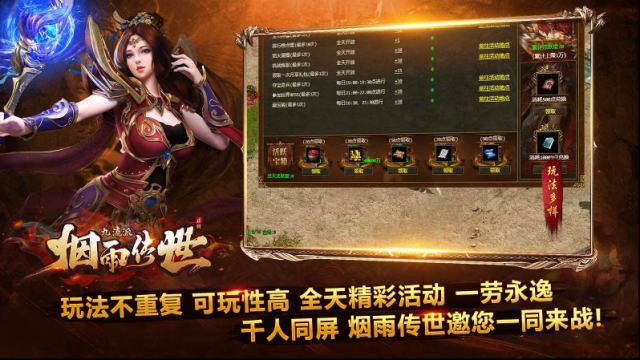 烟雨传世,176复古三职业版本,三端互通打造,在传统复古金币底版基础上新增九流派玩法,进一步提升游戏趣味性,让每一位玩家享受更激情的体验!无月卡点卡限制,所有玩家零门槛登录,无元神,神武顶级的底版无需赘述,装备材料100%靠打,金币书页刚需保值!新增怪物精魄召唤BOSS,爆率全看脸,收获更公正!