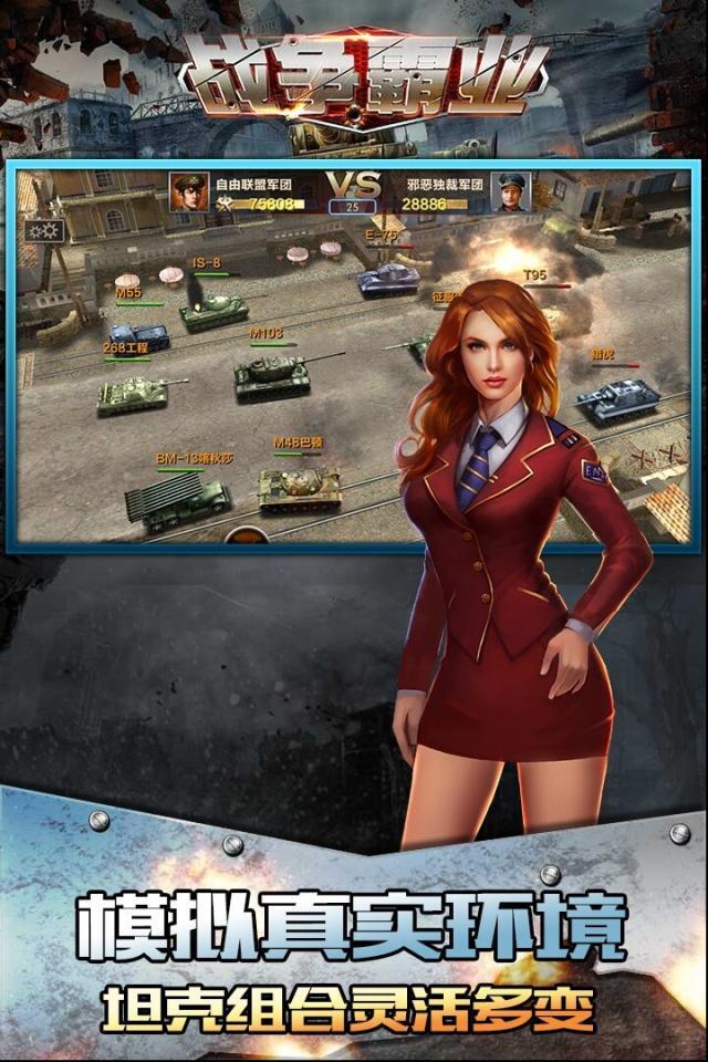 战争霸业是一款以坦克战斗为主题的射击手游,游戏中玩家扮演一名指挥官,需要带领自己的军官组建一支强大的坦克战斗,为开疆拓土开辟新的路径。游戏3D的逼真画风,带你领略这场史上最前沿的坦克大战。