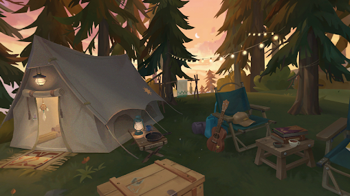 3、游戏手绘油画画风堪称一绝,慵懒的咖啡馆、开阔的户外野营地、星光点缀的夜空,每一帧画面都如同精美的艺术品。
