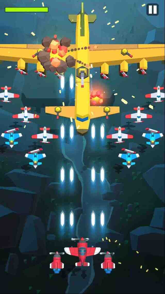 游戏中你将驾驶不同的战机去击败敌人,通过完成各种各样的挑战来体验新的乐趣,消灭敌人获得道具增强自己的火力,击败更多的敌人让自己变得更厉害,完成不同的挑战来体验全新的乐趣,不断在一场场的战斗中获胜来体验新的乐趣吧。
